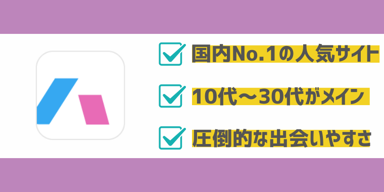 10代~30代がメインとなっていますが、会員数の多さもあり、圧倒的に出会いやすいのが特徴です。