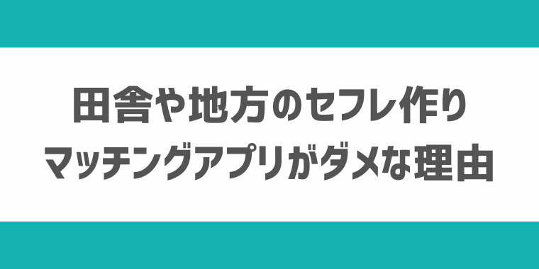 その理由を「 田舎や地方のセフレ作りでマッチングアプリが出会えない理由」の項目にて詳しく解説しています。