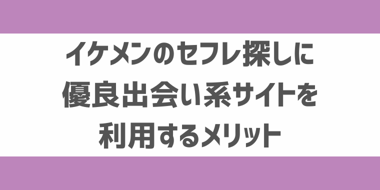 実はイケメンのセフレを探すときに、優良出会い系サイトを利用するのには、大きなメリットがあります。
