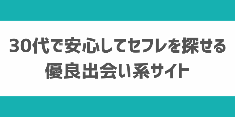 30代が安心してセフレを探せる優良出会い系サイトとして、