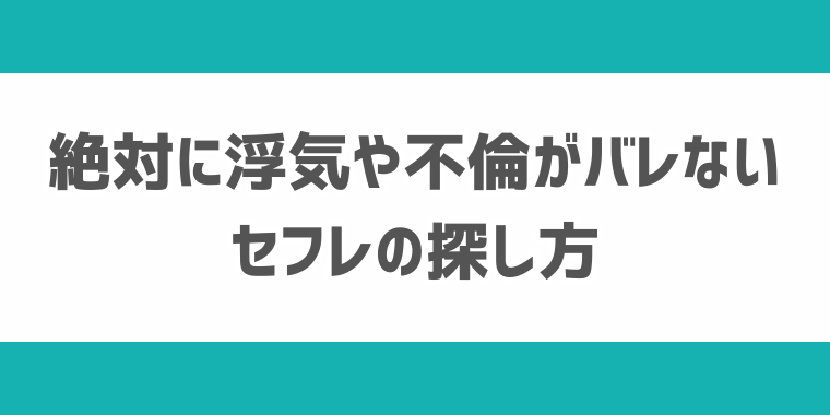 - 絶対に浮気や不倫がバレないセフレの探し方